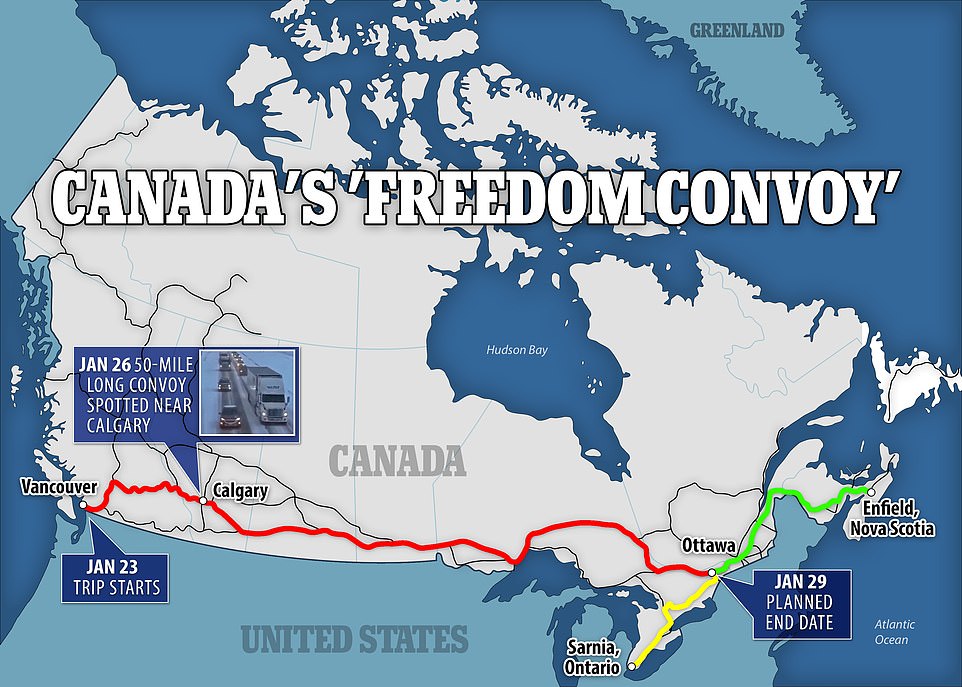 Il 22 gennaio, da Vancouver, è partita la protesta dei camionisti canadesi “Freedom Convoy 2022”. Una lunga marcia di oltre 4.000 km in direzione Ottawa, capitale e sede del parlamento canadese, dove la carovana è arrivata in massa per dire basta agli obblighi vaccinali e stop allo stato di tirannia che si è venuto a creare in seno alla pandemia di Covid19, predicando messaggi di libertà, uguaglianza e fraternità.